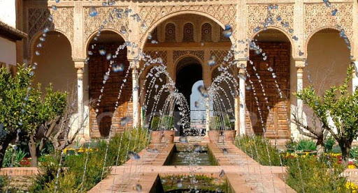 الحمرا نام کاخی ست واقع در گرانادا اسپانیا که توسط مسلمانان در سده ۱۳ بنا نهاده شده است و هدف از ساخت این کاخ با عظمت و بسیار زیبا کوشش برای بوجود آوردن نمایی از بهشت رو زمین عنوان شده است. این کاخ تشکیل شده است از چند کاخ که در طول سالیان هر فرمانروا، کاخ مخصوص خود را ساخته‌ است.